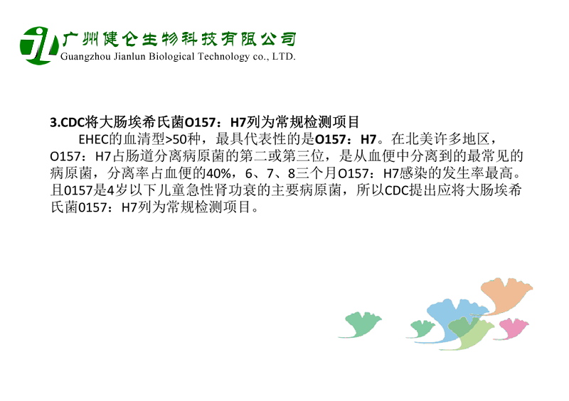 大腸桿菌是人和動物腸道中的正常菌群,一般對人無害。本菌為革蘭陰性的短桿菌,其抗原結(jié)構(gòu)有3種,即菌體抗原(O抗原)、包膜抗原(K抗原)和鞭毛抗原(H抗原)。O抗原是血清分型的基礎(chǔ),目前已發(fā)現(xiàn)有170多種,其中一些特殊的血清型具有病原性,能引起人類腹瀉,故稱為致瀉性大腸桿菌,而由其引起之腸炎稱致瀉性大腸桿菌腸炎。世界各地廣泛存在本菌感染,嬰兒腹瀉中檢出率較高,在成人中亦可呈散在或暴發(fā)流行。臨床表現(xiàn)為旅游者腹瀉或食物中毒。新生兒病房及托兒機(jī)構(gòu)可引起交叉感染而發(fā)生流行。